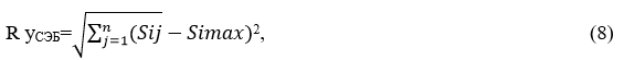 Комплексная оценка устойчивости СЭБ (R yСЭБ) строится с помощью традиционной рейтинговой оценки с помощью метода Евклидова расстояния: