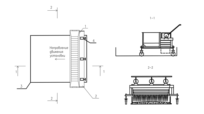 1 – бункер для подачи фибробетонной смеси; 2 – выравнивающая гребенка;