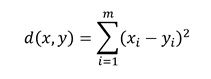 Для определения дистанции до центра кластера с одинаковыми размерными единицами используем Евклидову меру. Мерой для определения расстояния между параметрами на плоскости, образованной координатными осями х и у, является Евклидова мера или квадрат Евклидова расстояния [4]: