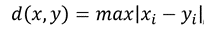 Расстоянием Чебышева между n-мерными числовыми векторами определяется максимум модуля разности компонент этих векторов [4]: