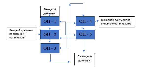 -если в результате реализации процедуры выявляются документы, отправляемые во внешнюю организацию, то в блок-схеме стрелкой указывается место выхода документа и его наименование или номер.