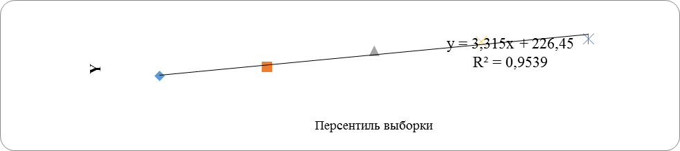 2. Значение Y-пересечения 1261,5 указывает на том, что на значение анализируемого параметра влияют и другие факторы, не описанные в модели.