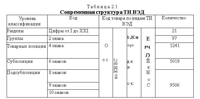 В табл. 2.1 приведена современная структура ТН ВЭД.