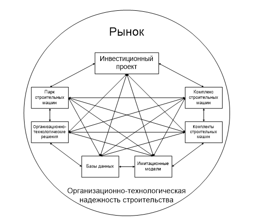 Одним из основных факторов, влияющих на реализацию ИП при строительстве, является организационно-технологическая надёжность машин и процессов при производстве строительно-монтажных работ [5, 6]. Под организационно-технологической надёжностью (ОТН) понимается способность технологических, организационных, управленческих экономических решений обеспечивать достижение заданного результата строительного производства в условиях случайных возмущений, присущих строительству как сложной вероятностной системе [7]. В основу разработки принципа ОТН заложен вероятностно-статистический подход. Человеко-машинные (организационно-технологические, управленческие) системы, включающие помимо технологических, экономические и социальные аспекты, характеризуются определенным уровнем надежности, который существенно снижается по мере усложнения системы. Для определения ОТН системы пользуются методами теории надежности, основанной на анализе распределений совокупностей случайных величин – надежностей отдельных элементов комплекса [1-2].