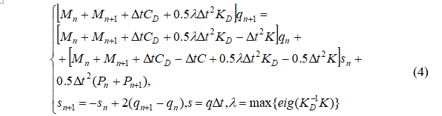 Абсолютная устойчивость обеспечена при =0.5(m+3)λ. Здесь ƛ – максимальное собственное число матрицы (KD)-1K [43, 48-50].