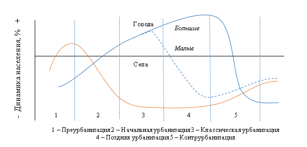 - Третья стадия – контрурбанизация 1980-х и 1990-х годов;