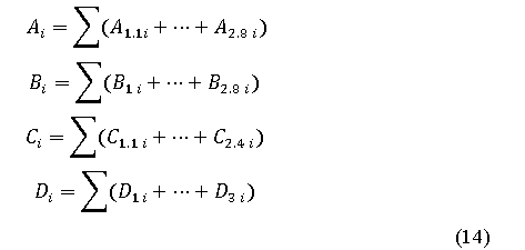 где A, B, C, D – компоненты индекса, приведенные в таблице 1. При этом, указанные компоненты могут выступать как в качестве параметра в составе Формулы 13, в таком случае их расчет имеет вид: