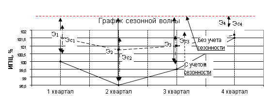 - количественная формализация сезонных колебаний (определение формы и масштаб сезонности);