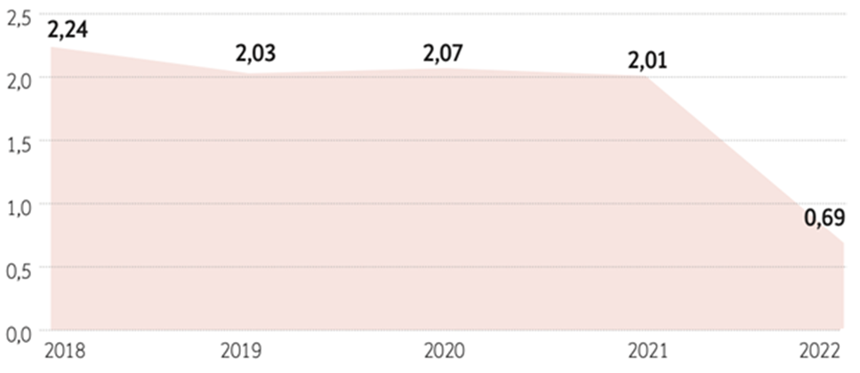 Рис. 1. Импорт соевых бобов в Российскую Федерацию в 2018 – 2022 г.г., млн. т