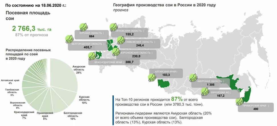 Рис. 2. Инфографика посевных площадей под соей в регионах Российской Федерации в 2020 г.