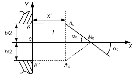 Так как q=0; a=a0, M0A/0 и M0A0 прямые линии, четырехугольник на рис. 3 является прямоугольной трапецией. Таким образом при известном расстоянии $X_D^I$ определяется геометрия и кинематика I-го участка растекания потока.