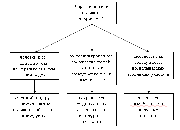 Таким образом, первостепенными сущностными экономическими характеристиками сельских территорий являются следующие: определенная территория, состоящая в основном из возделываемых земельных участков; тесная взаимосвязь человека и его деятельности с природой; сельское сообщество как консолидированная общность людей, склонных к самоуправлению и саморазвитию. Следствием из них соответственно можно выделить: частичное самообеспечение сельского населения продуктами питания; производство сельскохозяйственной продукции как основной вид деятельности человека; сохранение традиционного уклада жизни и культурных ценностей. При принятии тех или иных управленческих решений в сельских территориях необходимо рассматривать не только экономический потенциал местности, но и социокультурные особенности проживающего там населения.
