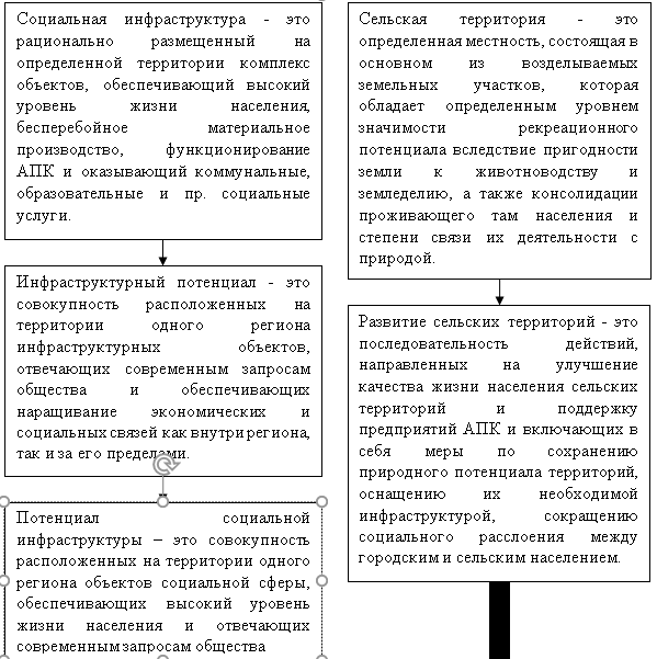 По результатам анализа, обобщения и систематизации теоретических основ, развитие социальной инфраструктуры сельских территорий следует определить, как последовательность действий, направленных на возведение новых и модернизацию имеющихся объектов социальной сферы, расположенных в сельской местности и обеспечивающих высокий уровень жизни населения и отвечающих современным запросам общества