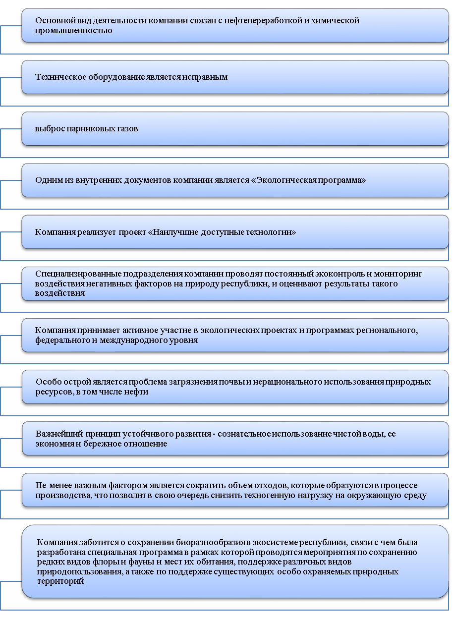 1. Основной вид деятельности компании связан с нефтепереработкой и химической промышленностью, поэтому выброс вредных и загрязняющих веществ в атмосферу, грунтовые и подземные воды и иные природные объекты неизбежен. В связи с этим компания не только придерживается допустимых нормативных ограничений по указанным выбросам, но и всеми возможными способами сводит к минимуму негативное воздействие на окружающую среду;