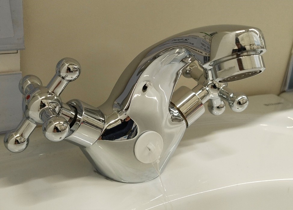 Сегодня самый низкий по стоимости является двухвентильный смеситель (рис. 1) [6]. Принцип его работы состоит в следующем. Он имеет две вентильные головки. Правая окрашивается в синий цвет, она ответственна за регулирования расхода холодной воды. Левая имеет красный цвет и отвечает за подачу горячей воды. Пользователь двумя руками начинает крутить две вентильные головки и настраивает под себя необходимый расход и температуру вытекающей воды, а затем начинает проводить водные процедуры. Такой принцип работы приводит к излишним потерям воды в системе. Во время настройки расхода и температуры пользователь водой не пользуется, а просто сливает ее в систему канализации. Излишние сливы приводят к большим потерям воды, которые могут достигать до 30-40% от общего расхода. Поэтому такой водоразборный прибор не рекомендуется к установке.