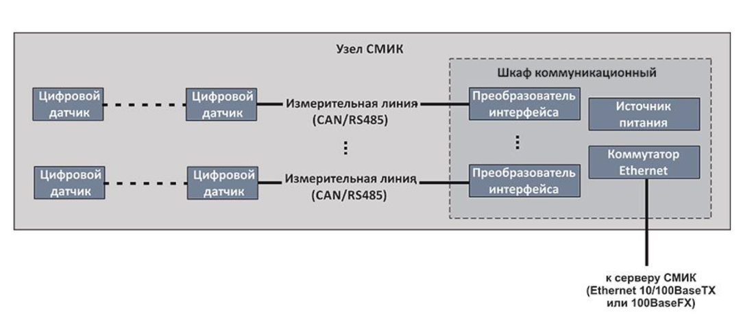 Узел сбора информации СМИК (рис. 6-8) для передачи данных от измерительной линии на промышленный компьютер или сервер системы мониторинга инженерных конструкций. Обладает следующими достоинствами: