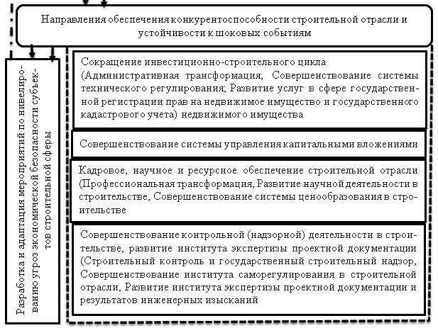 При формировании перечня инструментов регуляторного воздействия необходимо учитывать их возможности для оценки и управления угрозами экономической безопасности строительных организаций на современном этапе с целью придания более универсальных свойств системе, быстрой ее адаптации и трансформации.
