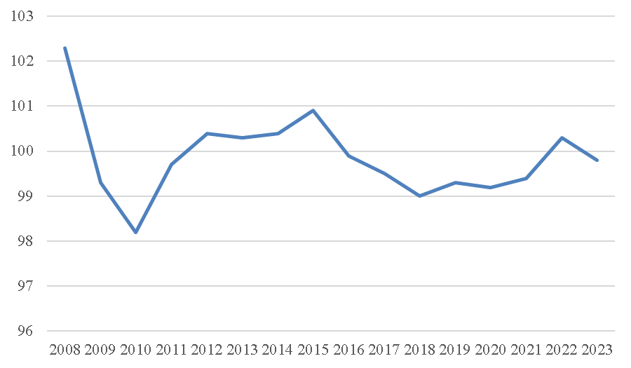 Рисунок 5. Динамика индекса делового климата в строительстве, %