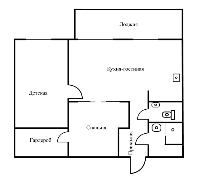 Рис. 1. Планировочное решение двухкомнатной квартиры
