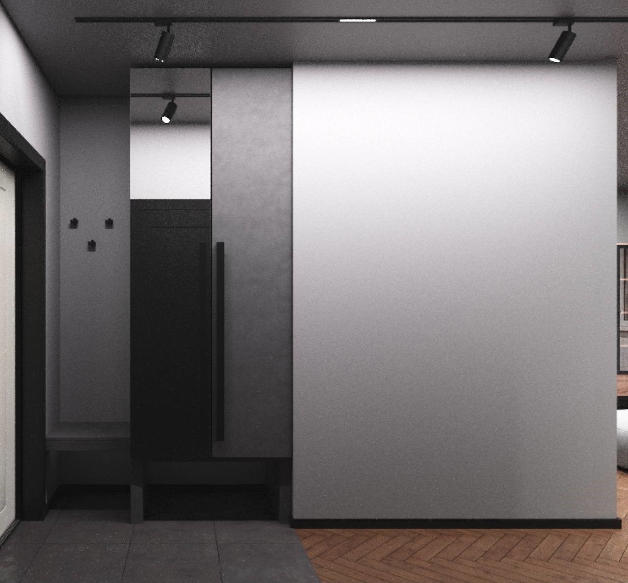 Предлагается взять за основу две противоположности, а именно черный и белый цвета. Первый в психологии означает неизвестность и пустоту. Второй символизирует рождение и легкость. Пустота, которая одновременно и притягивает, и отталкивает, стремится к бесконечности, символизируя бытие, которое нельзя понять, а можно только прочувствовать. Рождение и легкость одновременно окрыляет и дает надежду на лучшее и беззаботное будущее. Два этих цвета находятся в постоянном взаимодействии, пробуют подавлять друг друга, каждый из них стремится занять лидирующие позиции в борьбе за первенство. При их смешивании возникает оттенок серого. Он как новый участник бесконечного соперничества вносит в композицию определенное спокойствие, смягчая борьбу между черным и белым. Серый цвет, поражая своей скромностью, показывая свою практичность в окружающем пространстве, обладает определенной завершенностью и способностью примирить борьбу двух противоположностей. Именно взаимодействие трех вышеперечисленных цветов является основой композиции во всей рассматриваемой жилой ячейке.