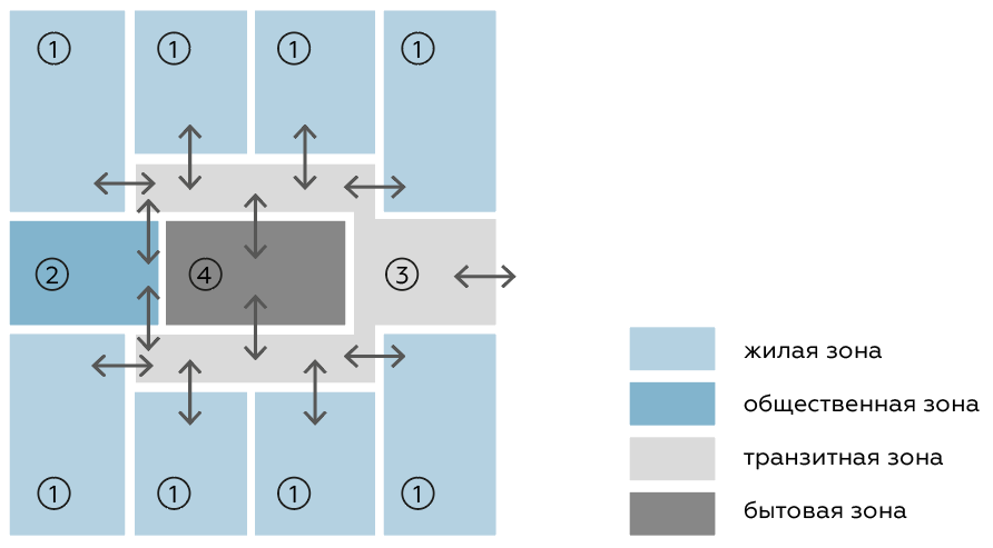 Рис. 7. Связи функциональных зон в блокированном общежитии