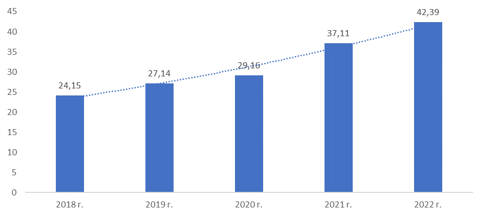 Figure 1– The volume of exports of agricultural products from the Russian Federation in 2018-2022 (billion dollars) [1]