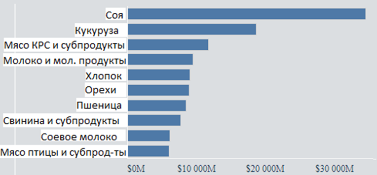 Рисунок 3 - Структура агропромышленного экспорта США по видам продукции в 2022 г., $млн.