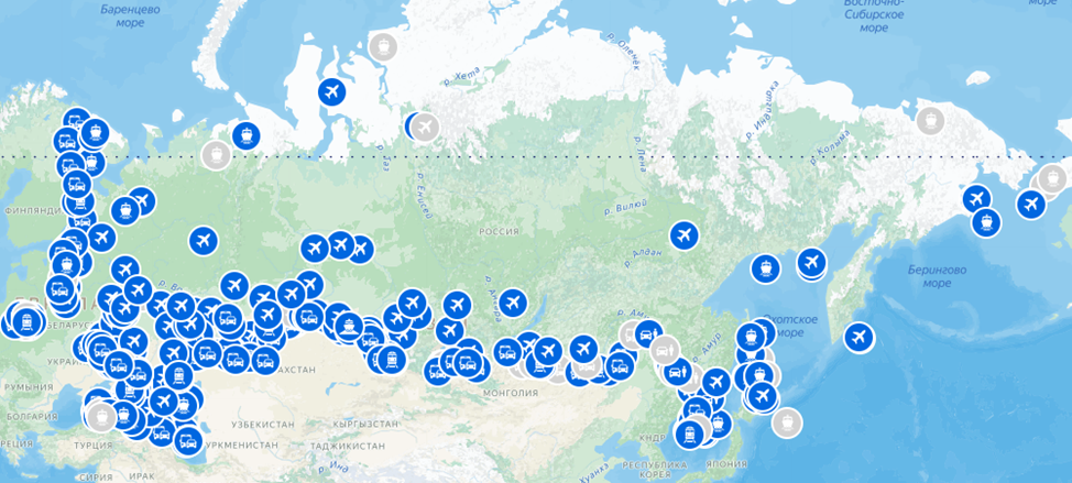По сведениям, представляемым ФГКУ «Росгранстрой» (https://rosgranstroy.ru/) в России (на декабрь 2024 года) существует 381 пункт пропуска, из которых функционирует лишь 315, среди которых 134 автомобильных, 91 воздушный, 60 железнодорожных, 67 морских, а также незначительное количество иных видов пунктов пропуска. Преобладание автомобильных пунктов пропуска, определяет факт их востребованности в системе внешнеторговой деятельности России и необходимости объективного смещения фокуса внимания к инфраструктурным решениям, связанным с их развитием. Общее насыщение территории России пунктами пропуска (которые, в общем случае, как, например, воздушные, могут находиться внутри страны) представлено на рис. 1.