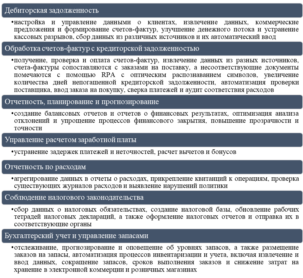 Рис. 1. Примеры интеграции RPA в систему бухгалтерского учета компании