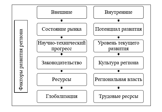 Внешние факторы указывают на деятельность в мировом рынке. Регион учитывает свои интересы, интересы государства и требования международного сообщества. Механизм развития региона можно увидеть на Рисунке 1.